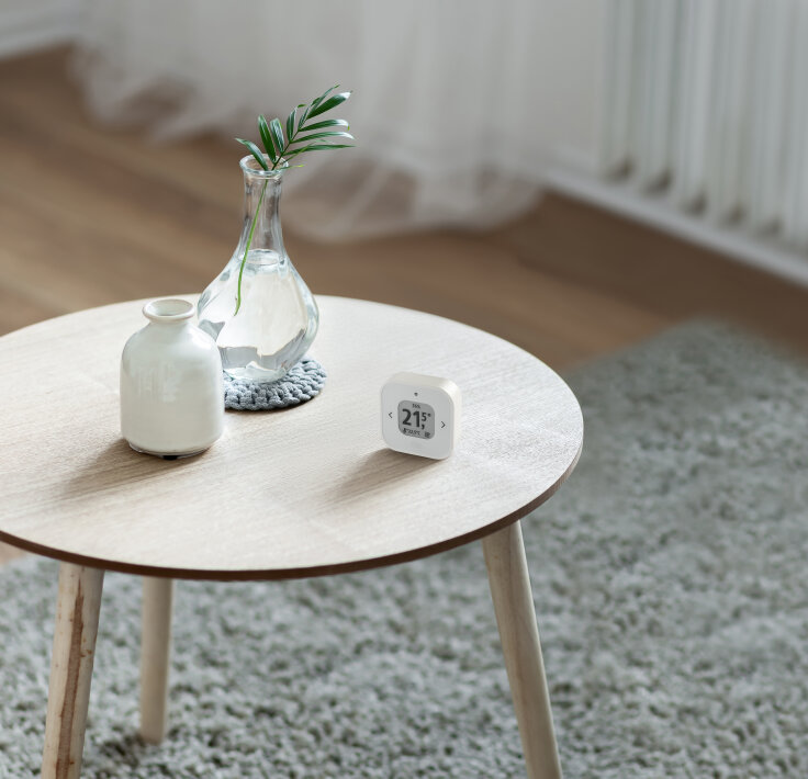 Eve Thermo Control, współpracując z zaworem grzejnikowym Eve Thermo, zapewnia automatyczne mierzenie i utrzymywanie preferowanej temperatury w wybranym miejscu w pomieszczeniu. Oznacza to, że ciepło dostosowuje się do miejsca, w którym się znajdujesz, a nie do lokalizacji grzejnika.