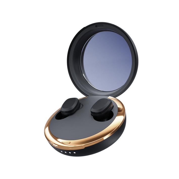 Dzięki etui ładującemu, które służy również jako lusterko do makijażu, możesz poprawić swój wygląd w podróży, ciesząc się ulubionymi utworami.