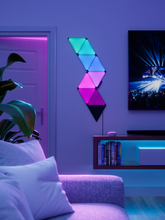 Inteligentne panele świetlne Nanoleaf Shapes dają praktycznie nieograniczone możliwości kolorystyczne. Stwórz klimat, na jaki masz ochotę, wybierając z palety ponad 16 milionów kolorów lub ustaw dynamiczne sceny kolorystyczne, by Twój dom mienił się feerią ciągle zmieniających się barw.