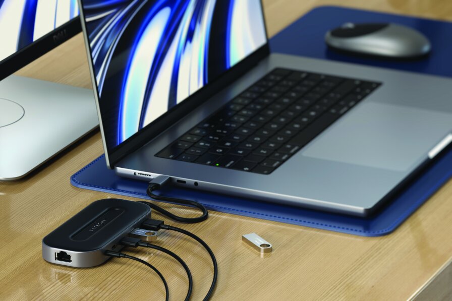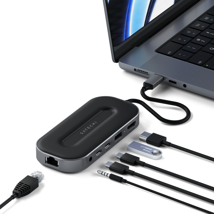 Satechi USB-4 Multiport to uniwersalny adapter zapewniający maksymalne rozbudowanie funkcjonalności twojego laptopa. Posiada wszystkie porty niezbędne do komfortowej pracy z kilkoma urządzeniami peryferyjnymi: