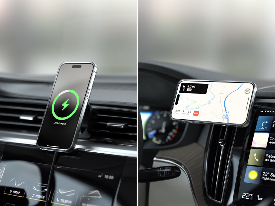 Stabilny uchwyt wentylacyjny i silny magnes bezpiecznie trzymają telefon, zapewniając łatwy dostęp i ochronę.