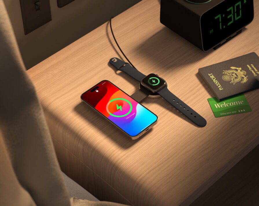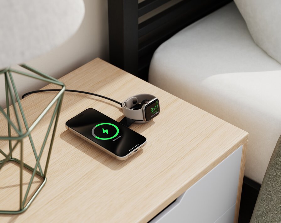 Urządzenie pozwala na jednoczesne ładowanie iPhone’a oraz Apple Watch. Dzięki temu można szybko uzupełnić energię obydwu urządzeń.