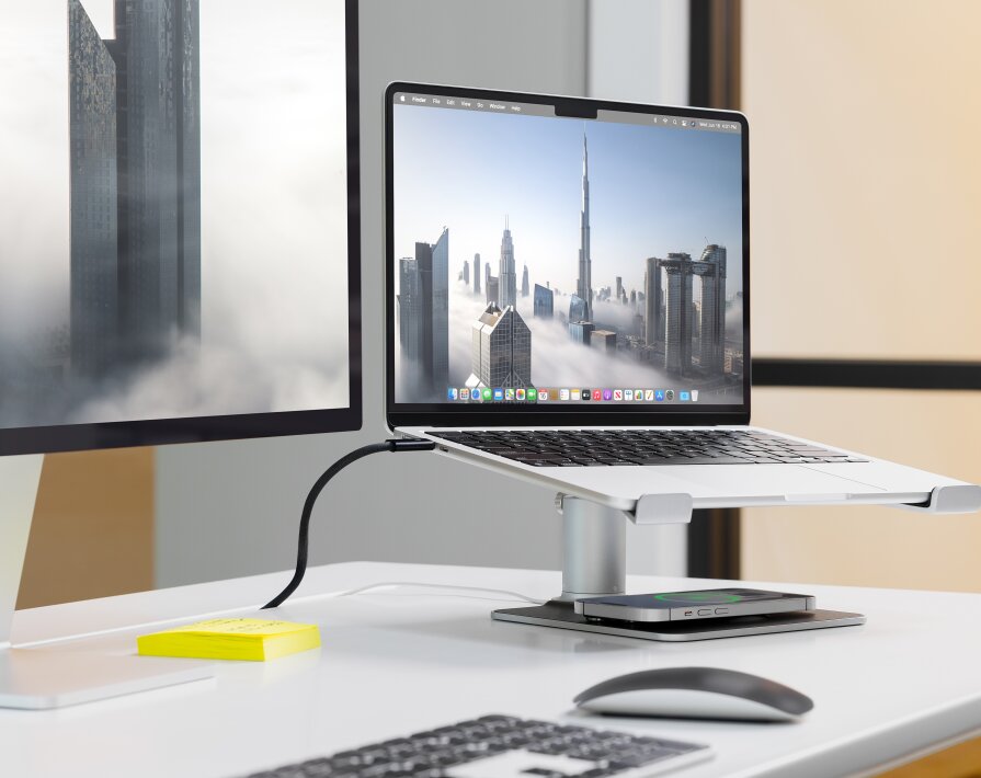 - Możliwość idealnego dopasowania wysokości ekranu laptopa do monitora