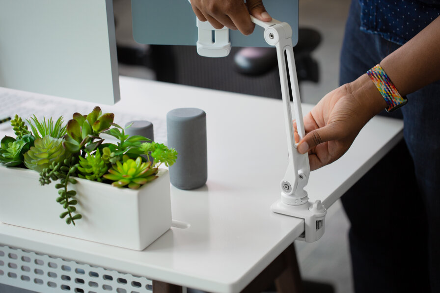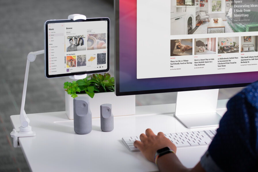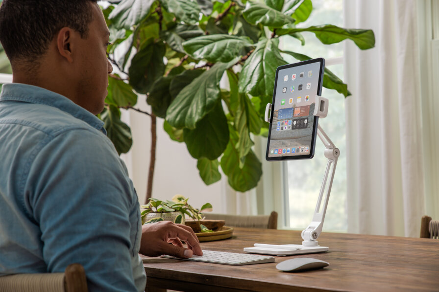 Ekranów wiecznie za mało. Oszczędź miejsce na biurku, ustawiając iPada nad monitorem i korzystaj z wielu ekranów bez wielu monitorów. Takie rozwiązanie da ci elastyczność w dostosowaniu stanowiska pracy i pozwoli na komfortowe przemeblowanie nawet małego pomieszczenia.