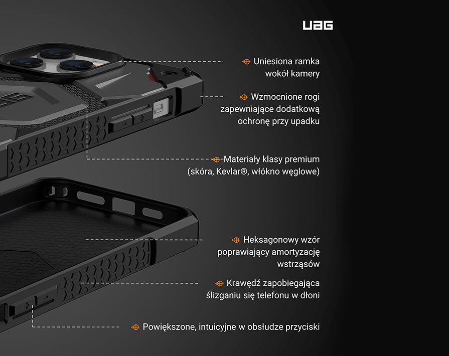 To, co czyni Monarch jedną z najmocniejszych serii marki UAG to innowacyjna konstrukcja, zbudowana aż z 5 warstw ochronnych: