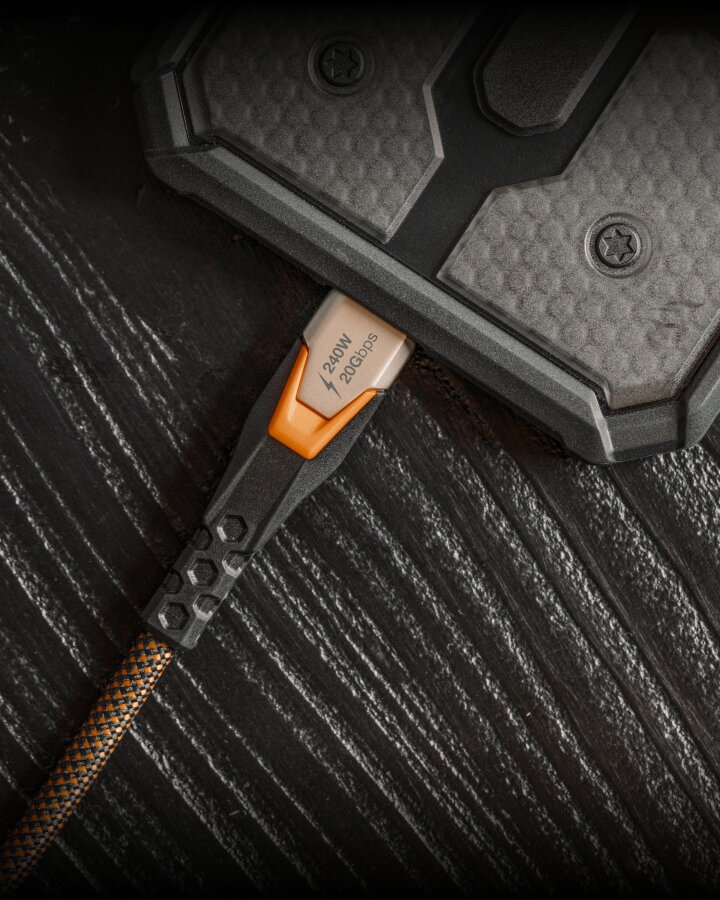 Wielokierunkowe wzmocnienie Hex Matrix zabezpiecza kabel przed uszkodzeniami spowodowanymi zginaniem.